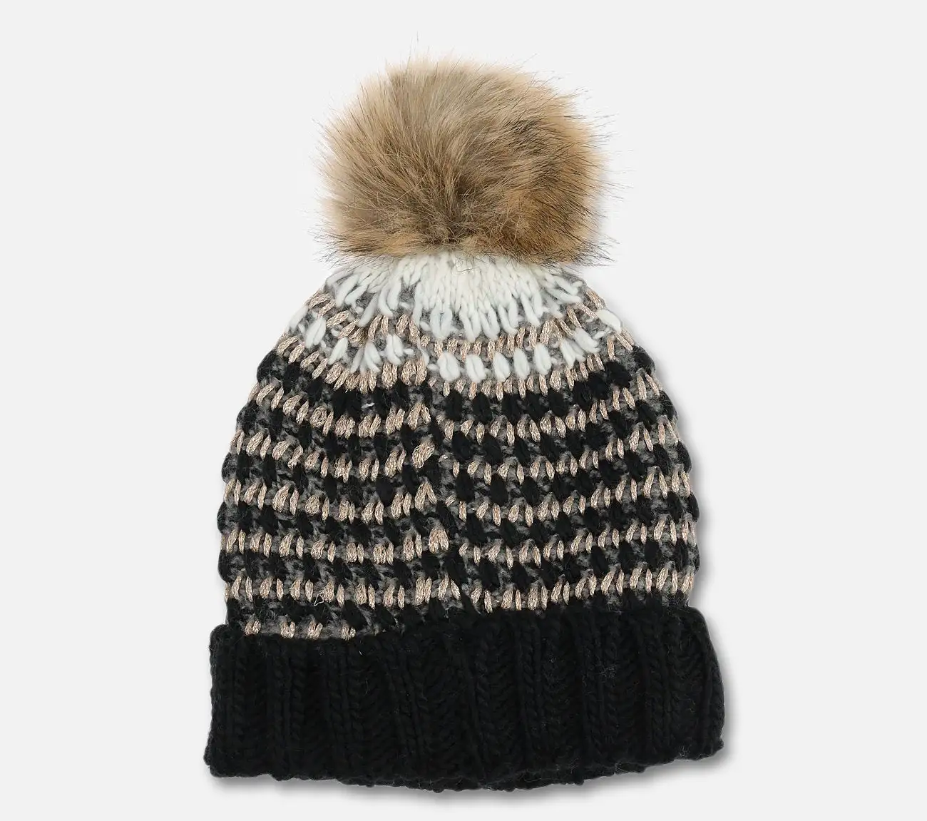 Lämmin pipo, jossa upeita yksityiskohtia. Tuo piristystä asuun ja pitää korvat lämpimänä kylmällä ilmalla. Tupsu tuo viimeisen silauksen pipon hienostuneeseen tyyliin.