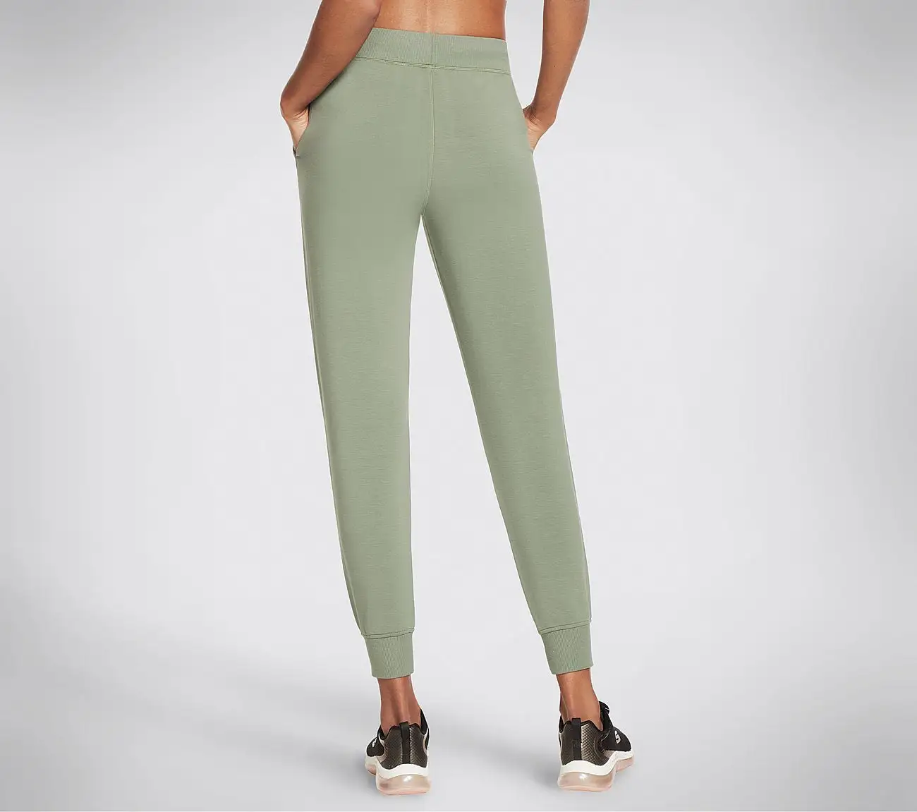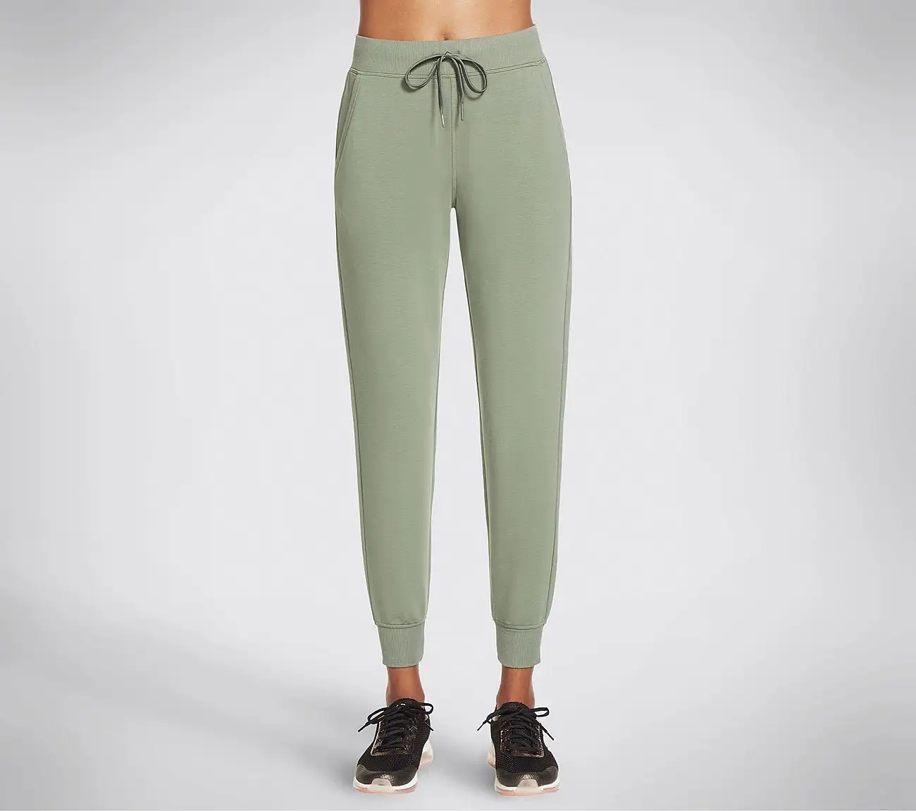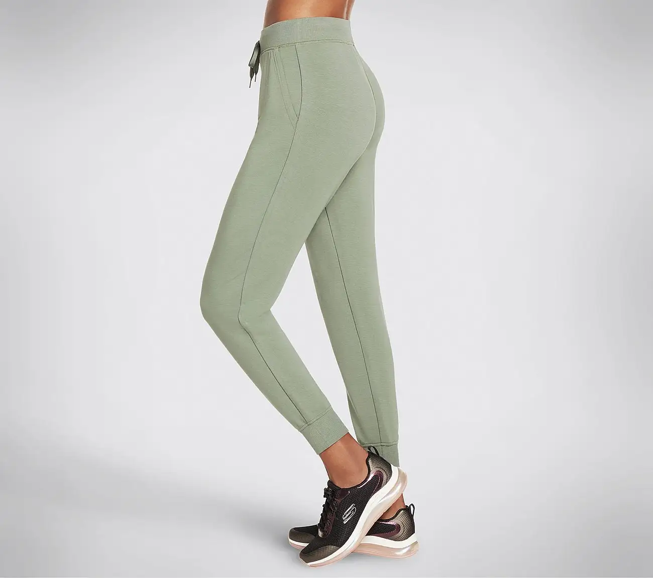 Mukavat Restful Jogger -treenihousut. Nämä tyylikkäät treenihousut on valmistettu SKECHLUXE-materiaalista, joka on pehmeää ja sileää ranskalaista froteeneulosta. Sopii erinomaisesti sekä treeneihin, kävelylenkeille että kotoiluun.